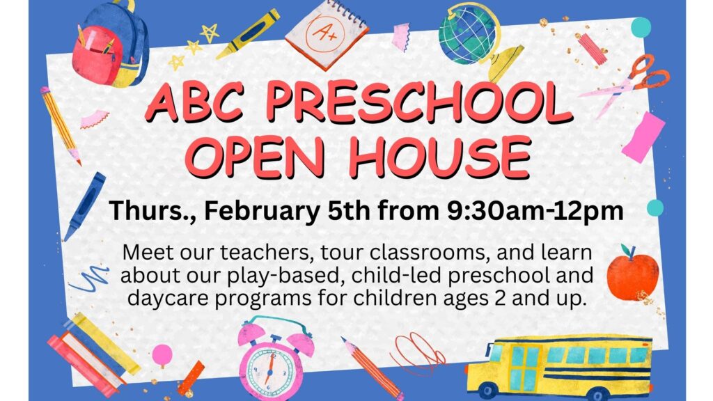 ABC Preschool Open House February 5th from 9:30 am to 12PM. Meet our teachers and learn about our program.