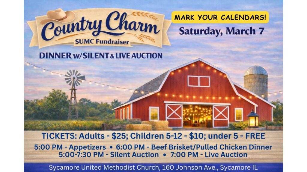 Mark your calendars for March 7th to attend our Country Charm SUMC Fundraiser, Dinner with Silent & Live Auction items.