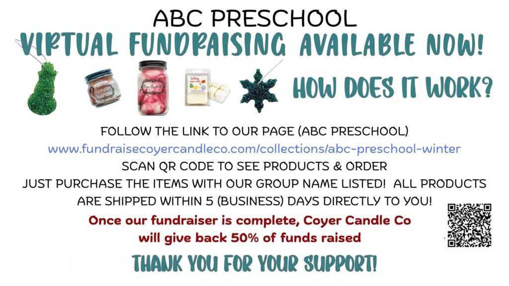 ABC Preschool Candle Fundraiser. Follow the link or scan the QR Code to order your candles!