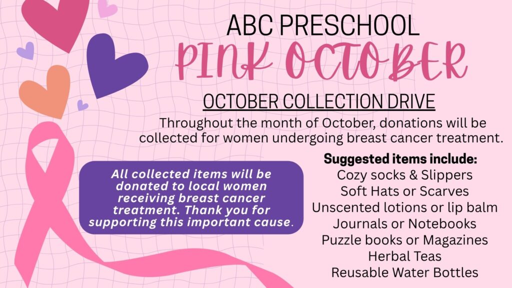 ABC Preschool Pink October Collection Drive for women undergoing breast cancer treatment.