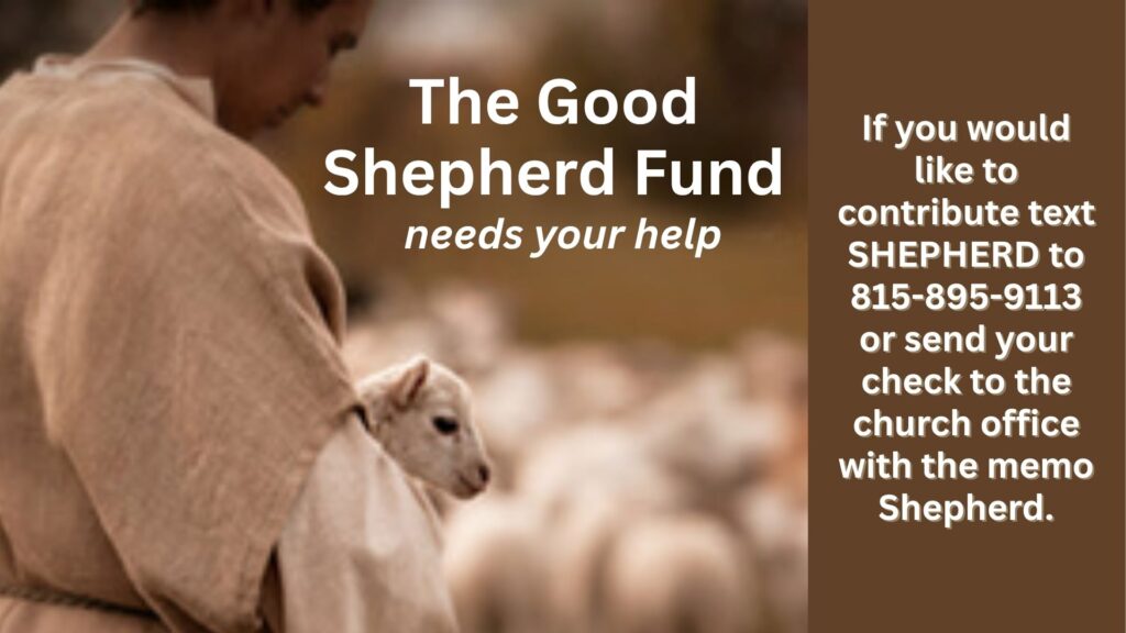 Our Good Shepherd Fund needs your help to provide assistance to those in need. To contribute text SHEPHERD to 815-895-9113
